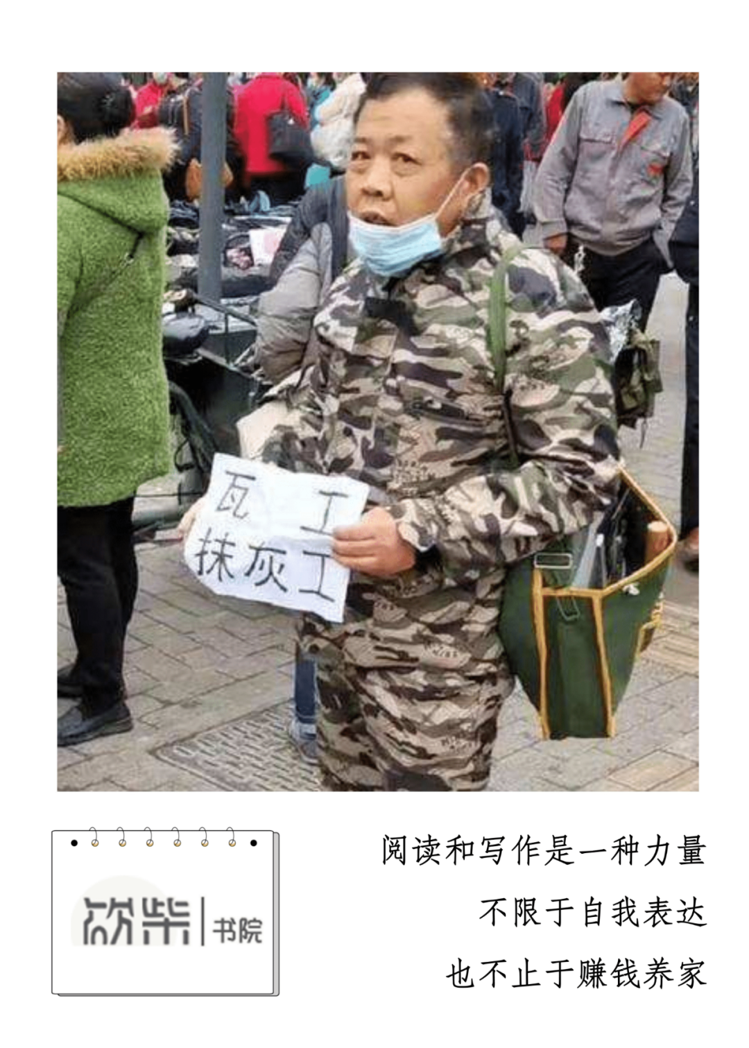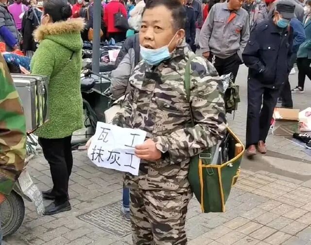 后来,张增加想起年少时曾跟别人学过一点泥瓦活,就索性拿起瓦刀和批铲,穿上迷彩服,背起工具包,来到熙来攘往的街头,混进民工堆里。