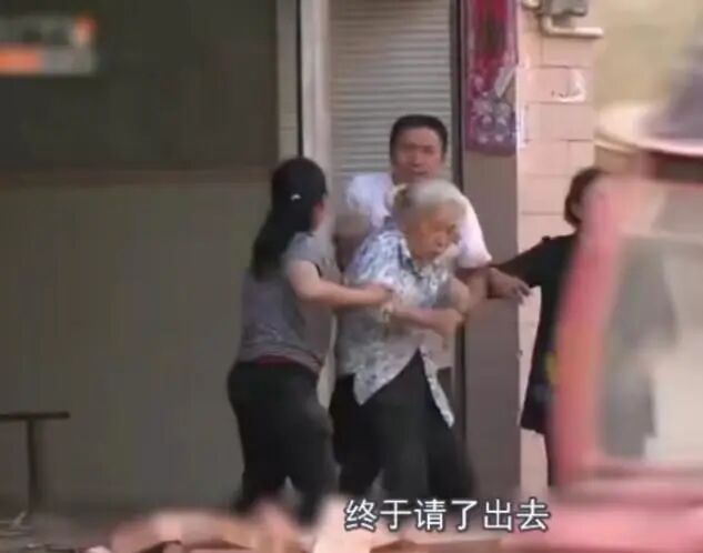 2020年6月28日,在四川省遂宁市大英县的一户住宅内,一位男子唐先生和他的家人一起,气愤地将一位82岁的钟老太太抬出了屋子。