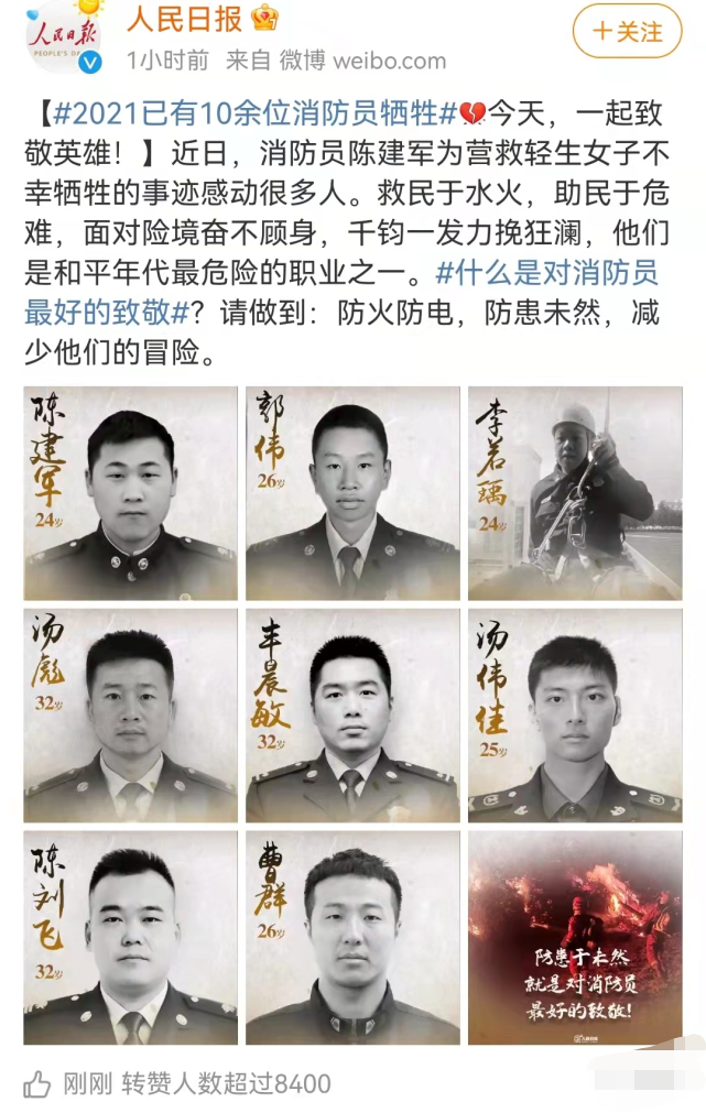 而尚未结束的2021年,牺牲的消防员就已经多达10余位!