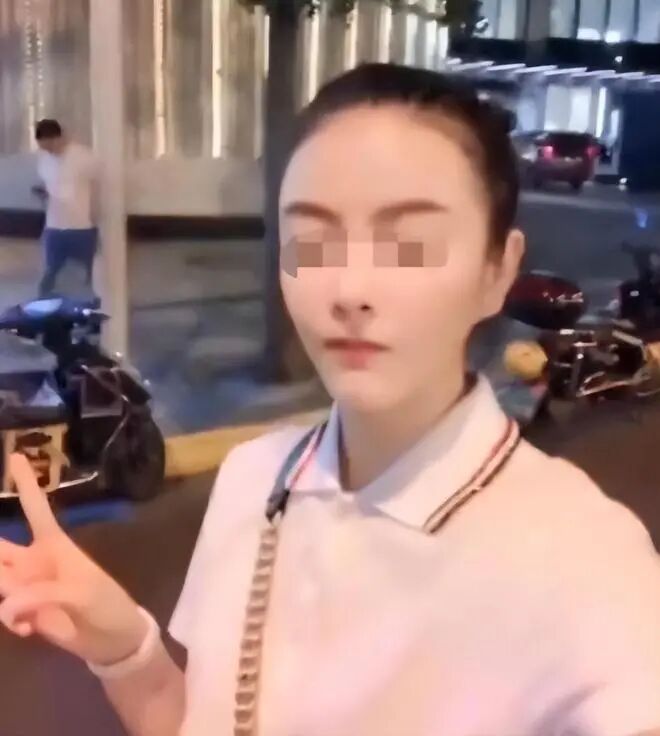 车辆阻挡了谭明明的去路,她被迫停在原地。