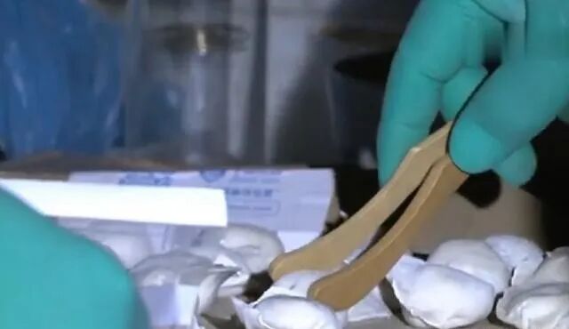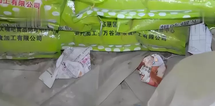 在民警的检查中,他们也发现了在堆积的编织袋中央,还放着一个奇怪的塑料袋,里面似乎还包着什么东西,而且每隔几层就有一个。