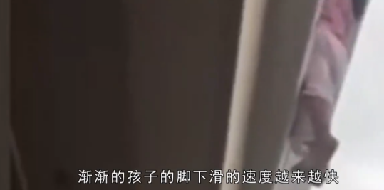 然而,残酷的一幕还是发生了!仅仅不到10秒钟时间,孩子就松开无力的双手,从楼上掉了下来!