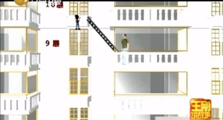 眼看喊叫无用,潘先生又赶紧拿来一把长梯,从自家窗台搭上孩子的窗户,希望能够卡住孩子的动作,可就是差了近三十公分,没够着。