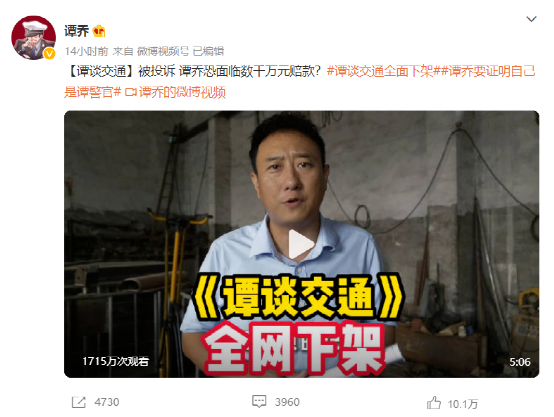 近日,《谭谈交通》主持人谭乔被一家名为成都游术的民营公司状告侵权,不但《谭谈交通》的全部作品被下架,谭乔还可能面临数千万的巨额赔偿。