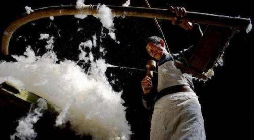 王绍义也不含糊,一双巧手在弹棉花机上飞舞,不多时,一床新崭崭的棉花被就出炉了。