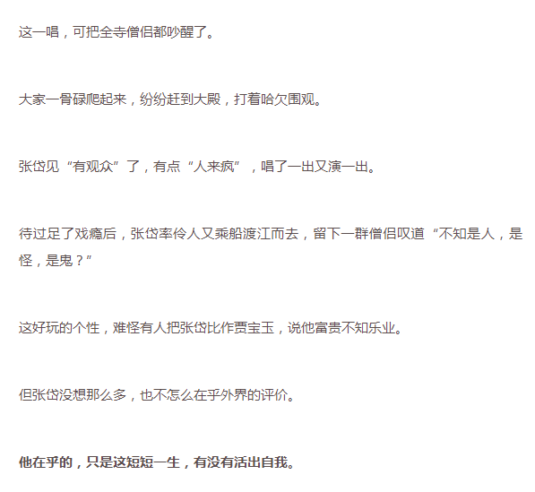 张岱不慌不忙,摇头晃脑答道,“眉公跨鹿,钱塘县里打秋风。”