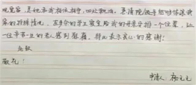 杨元元为此向学校提交申请,希望校方能够体恤一位“伟大”的母亲,为她安排一个床位。