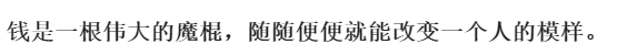 正如英国小说家菲尔丁说的:“如果你把金钱当成上帝,它便会像魔鬼一样折磨你。”