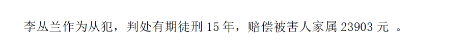 2013年年底,法院对李丛兰进行以下判决: