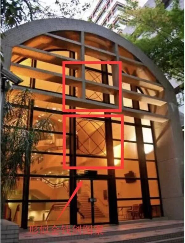 这栋大楼正门玻璃上的装饰物,形似“金钱剑”。而且其门口喷出的水柱,犹如并立的三柱水花,远看起来,很有些是给大楼“上香”之意。