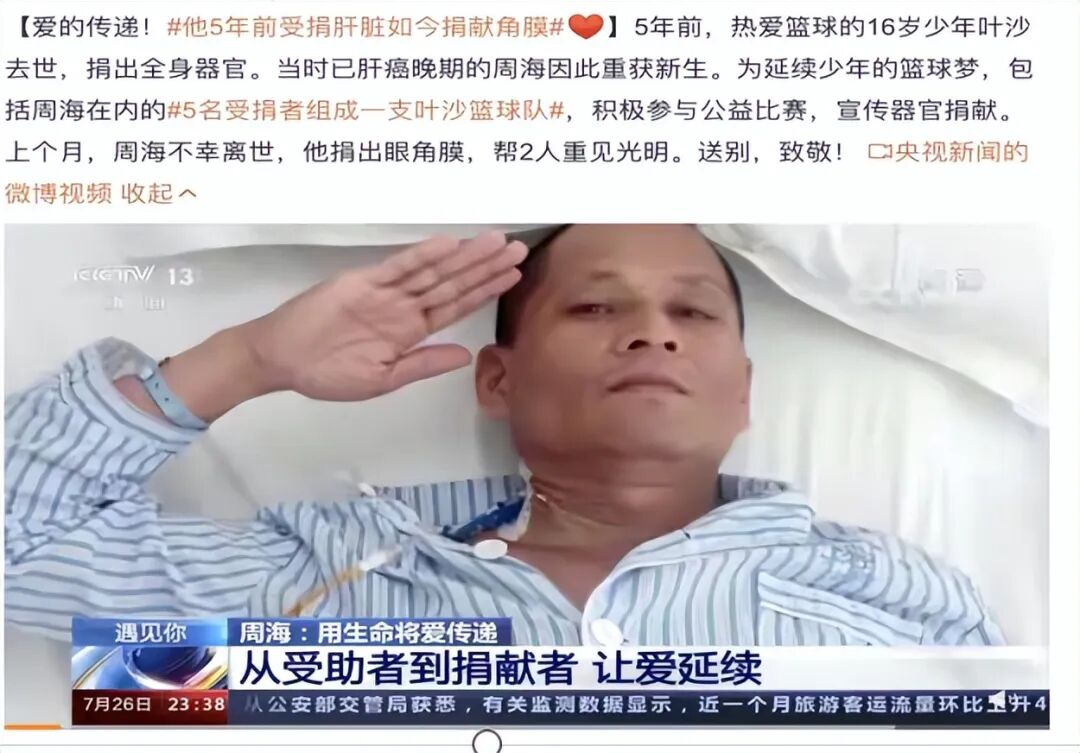按照周海的遗愿,他的眼角膜分别捐献给了两名眼疾患者,让他们终于重见光明。