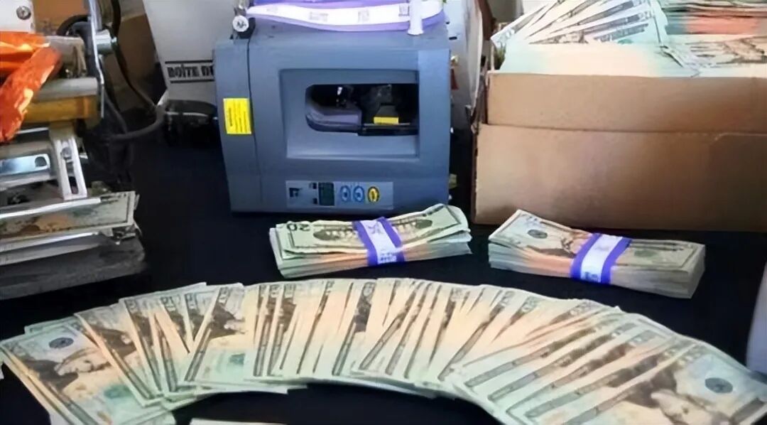 男人面前整齐地摆放着一叠叠美钞,他随手拿起一张,那手感、那光泽、那图案,还有那防伪标识,简直和真正的美元一模一样。
