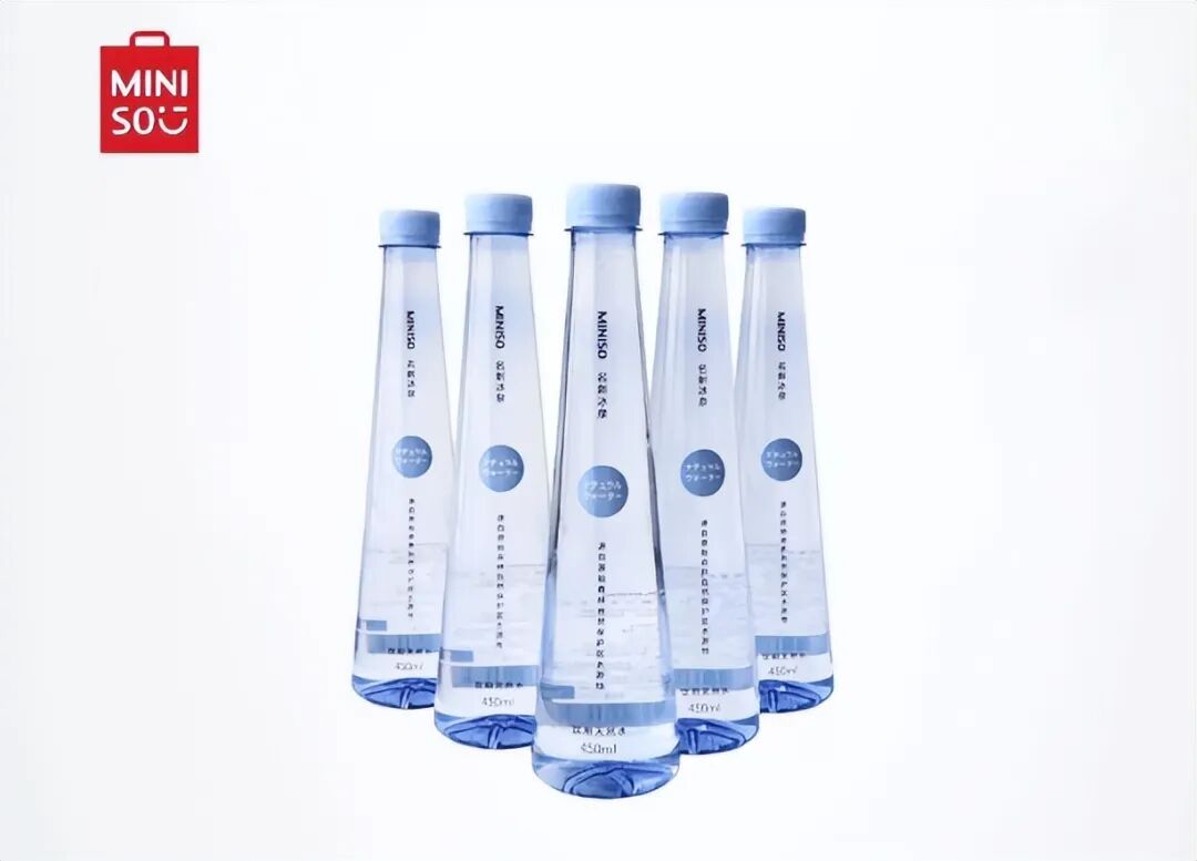 譬如名创优品旗下的矿泉水瓶设计就是一个典型代表,瓶身设计独特,采用简约的圆锥形更具时尚感。