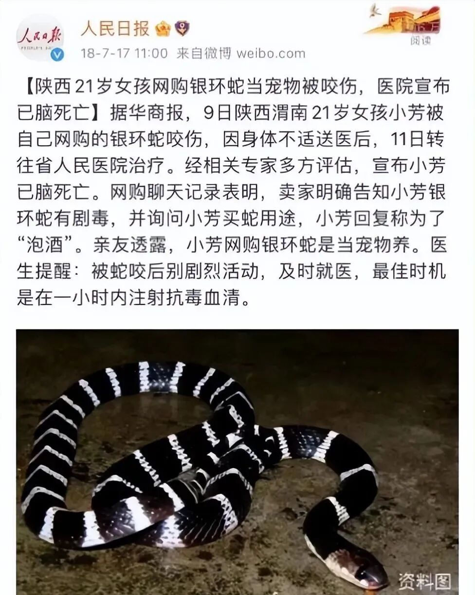 女儿养的银环蛇呢?蛇咬伤了女儿会不会已经跑出来了?伤了其它人怎么办?这样的悲剧,千万不要再发生!