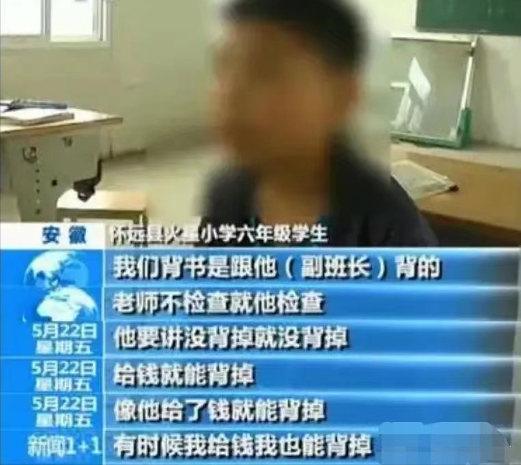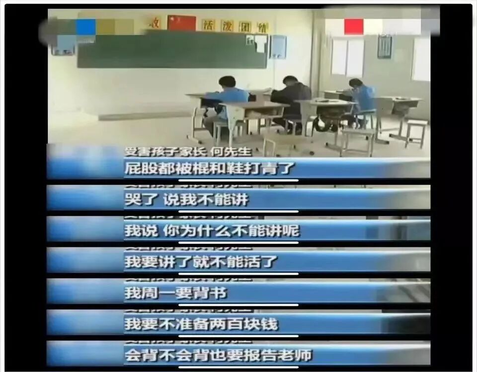 他必须给副班长小赐200元钱,否则,即便是背下了课文,小赐也会告诉班主任顾老师没有背下,顾老师就会狠狠体罚他。