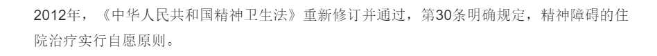 这一条规定,终于让精神病患者看到了希望的曙光,因为他们终于可以受到法律保护,不再被强制收治。