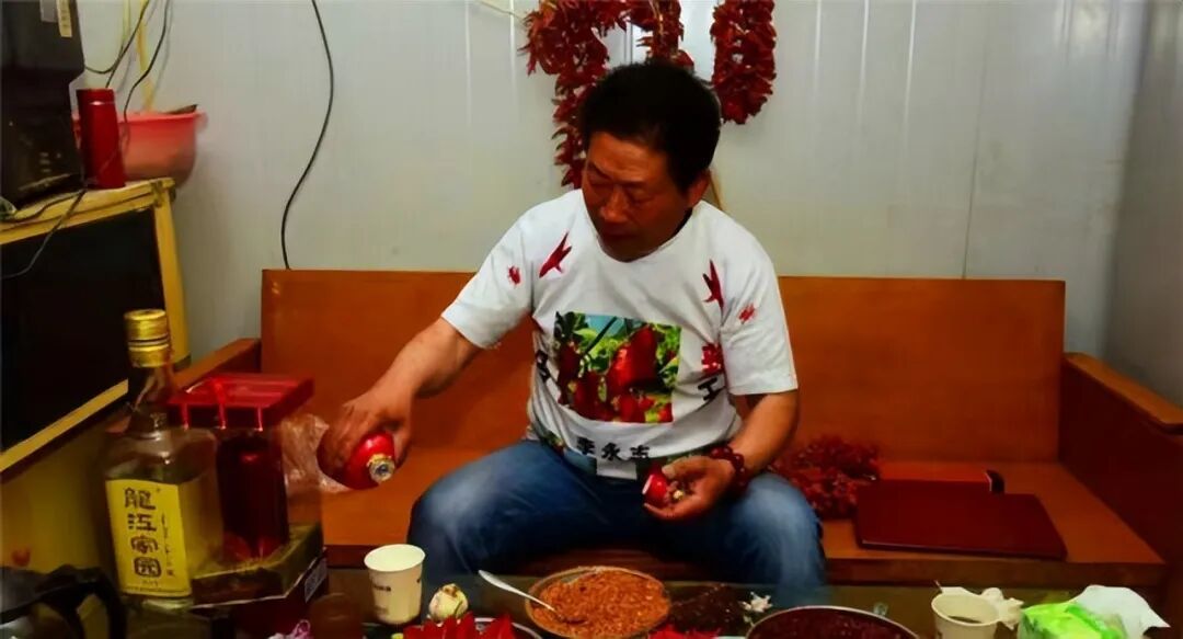这个人不但一天吃5斤辣椒,还是配着白酒和大蒜下肚的。