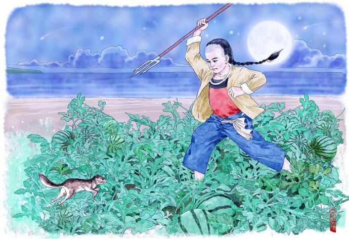这样的场景,令少年鲁迅心驰神往,以致于许多年后他在《故乡》中,还以生动的笔触,构想出项带银圈的闰土,手捏钢叉用力刺猹的画面。