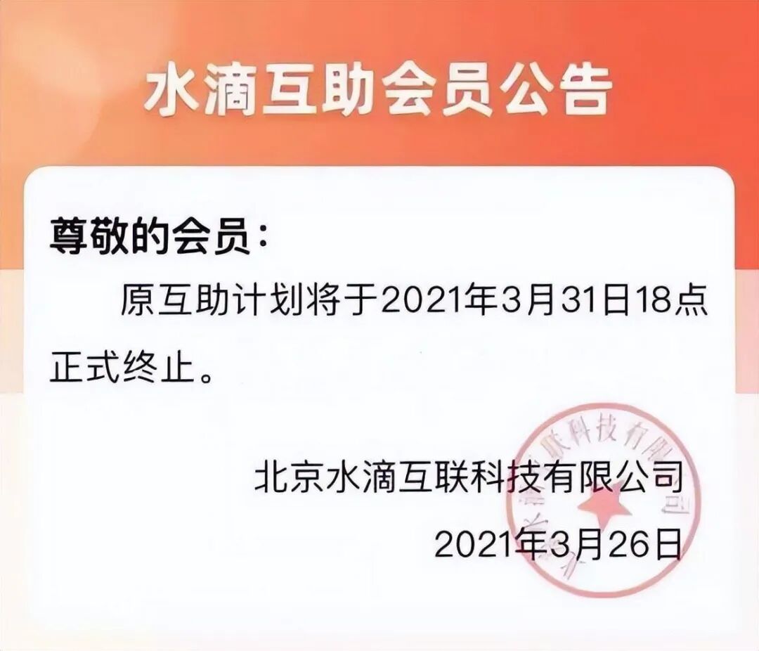 2020年3月,由于监管趋严,“水滴互助”平台宣布关停,这不仅使水滴损失上亿用户,还大大加重“水滴筹”的获客压力。