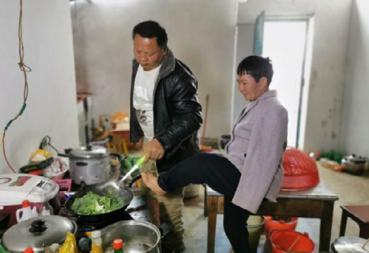 而张顺东在炒菜的时候,李国秀则用双腿去帮忙,夫妻两人齐心协力,相互照顾,一起过上了想要的日子。