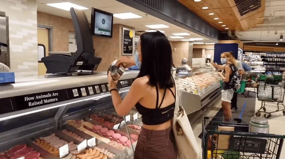 在有机超市里,她不光看到很多有机食物,还发现了很多和“零浪费”相关的产品,她很感兴趣。