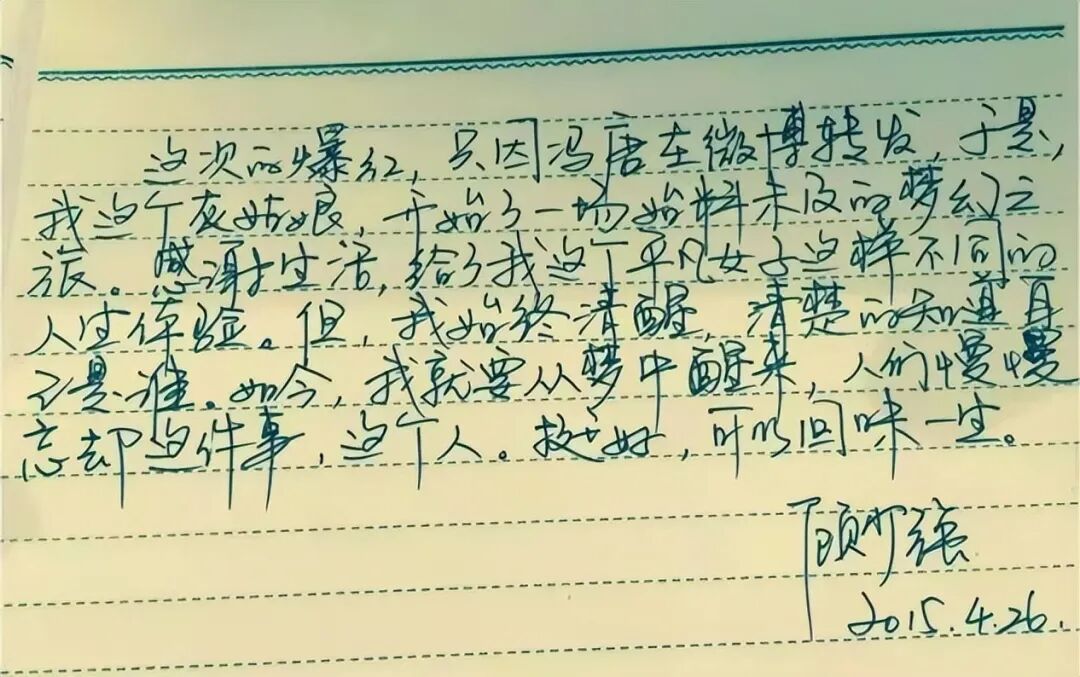随后,她拒接类似电话,只身去了成都,走得洒脱决绝。