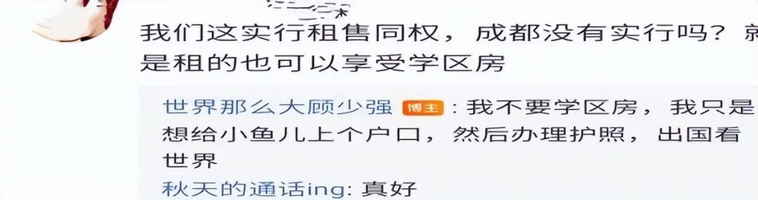 但顾少强当即霸气回复,说古镇挺好自己不要学区房,着急上户口不过是想带孩子坐飞机去国外看世界。