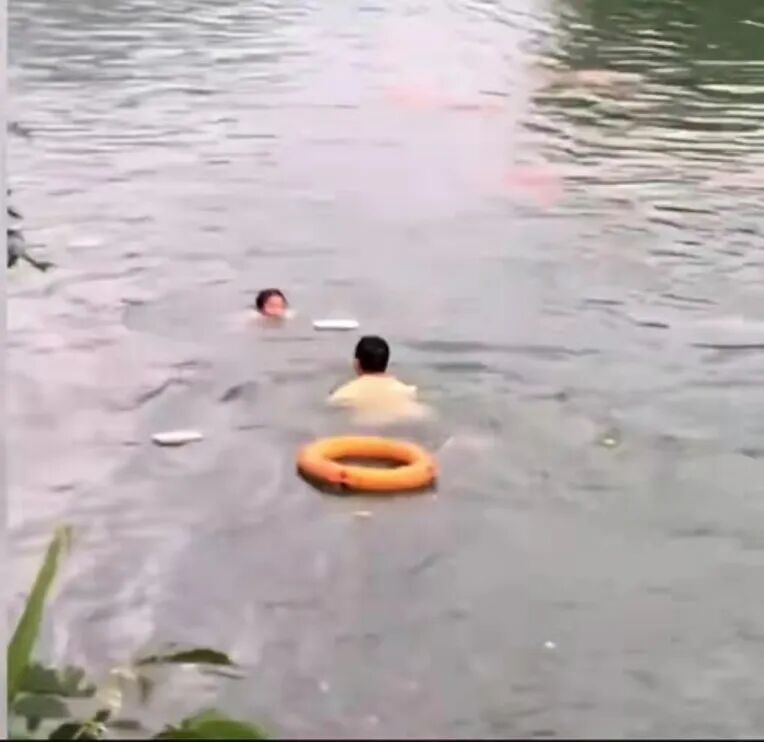 走到跟前,发现一个女孩在水中挣扎着,不断呼叫,却没有人下河救人。