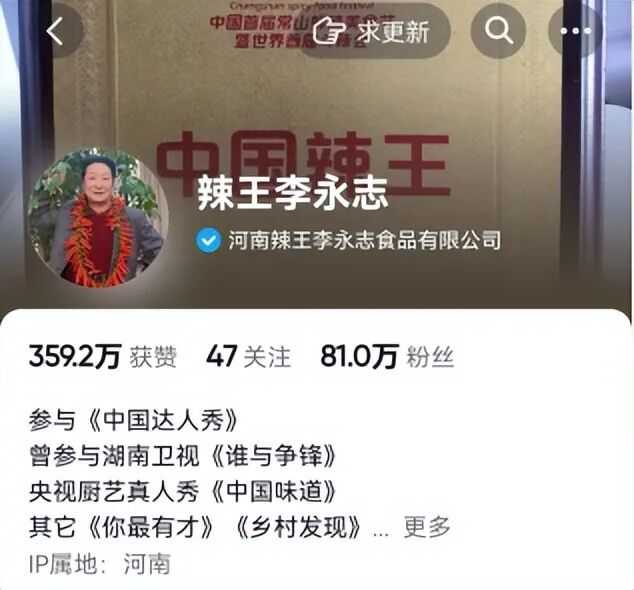 李永志彻底火时,正处在短视频崛起的风口上。他二话不说,开通个人账号:辣王李永志。在名人效应的赋能下,李永志账号的粉丝涨得飞快。