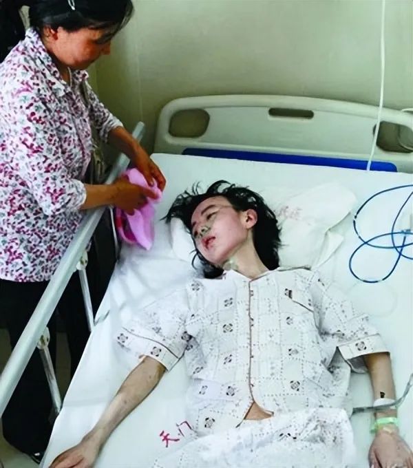 只见病床上,王刚正吸着氧气,面色苍白、瘦骨嶙峋、长发披散着,还不停地咳嗽。