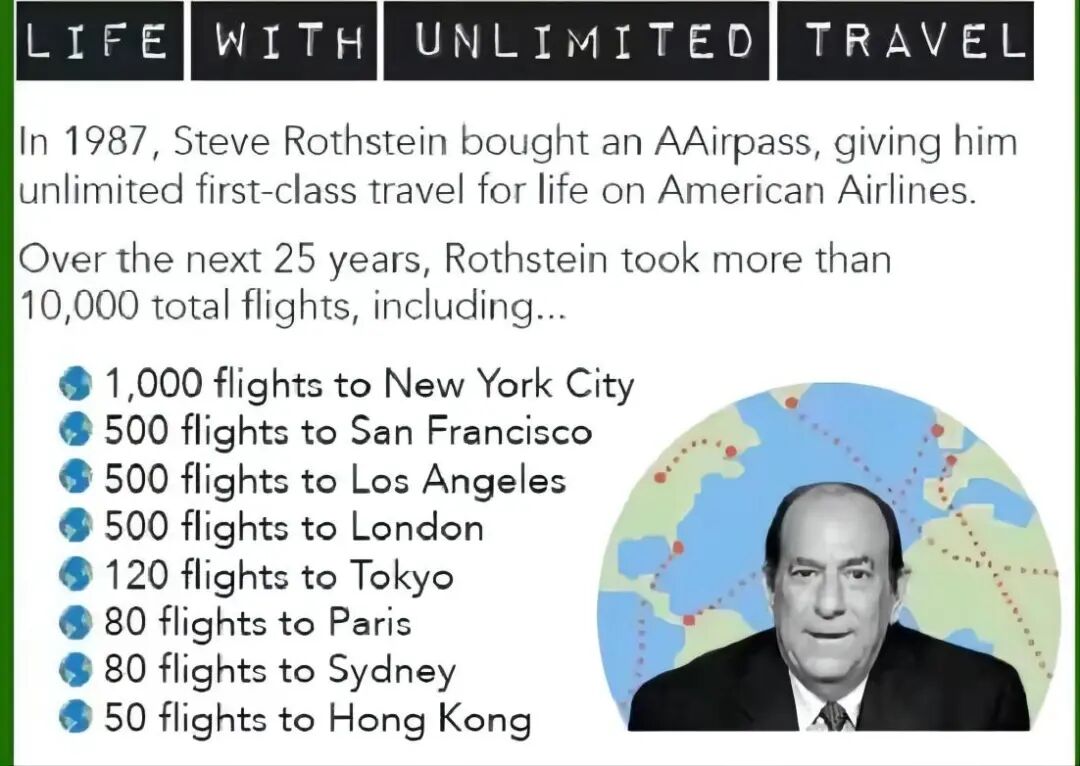 史蒂夫·罗斯坦是个银行家,事业遍布各地,同时,他也是个狂热的旅行达人,他人生最大的乐趣就是乘坐飞机想去哪儿就去哪儿。