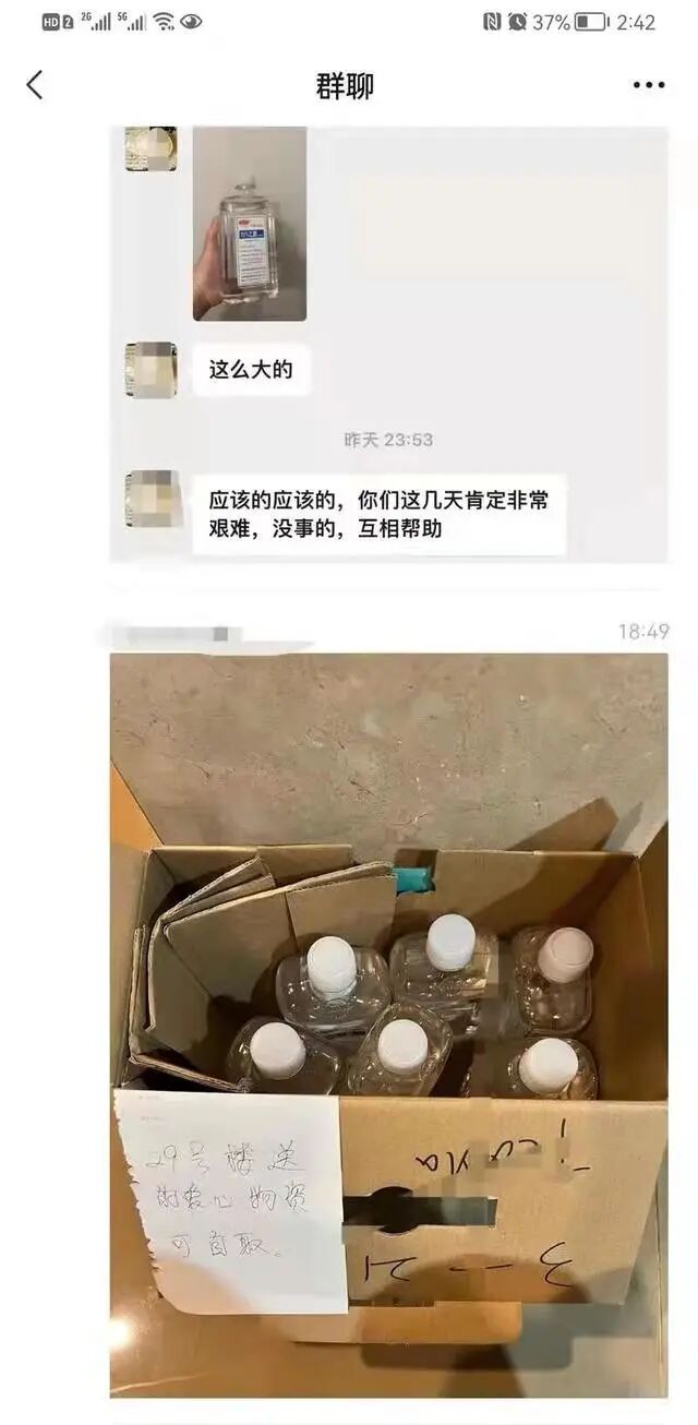 “可不能让给我们送物资的兄弟受委屈!”小区群的业主们得知消息后,立马行动起来。