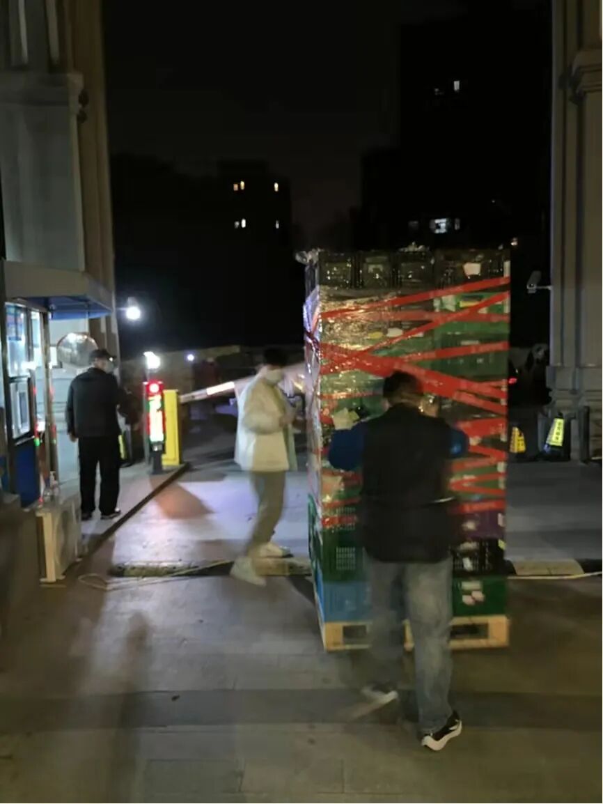 不得已,余中只能找到门卫,向他说明了情况,并请小区的保安和志愿者帮忙,把菜送到了老人手里。