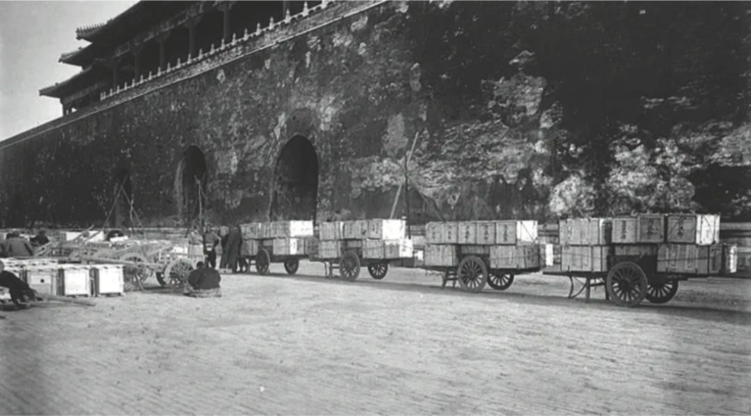 1933年2月5日晚,趁着夜色的掩护,故宫文物大迁徙开始,晚上9点钟,故宫大门打开,十几辆汽车和数百辆人力车在午门鱼贯而出。