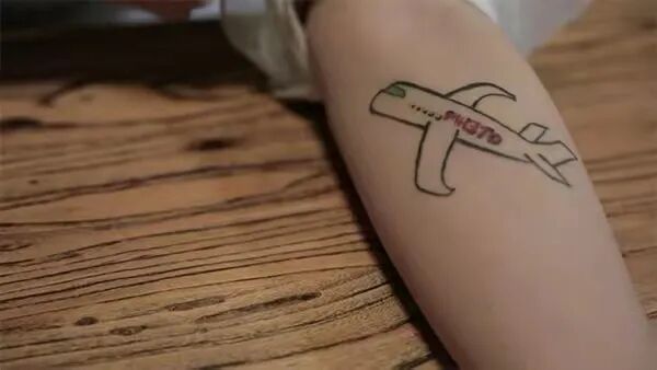 于是徐京红就在那里纹上了一架正在降落的MH370飞机,飞机正对着她的心脏。