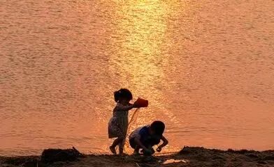 平日,他带女儿最常去的,就是县城里的人工湖公园。看看喷泉,喂喂小鱼,在湖边的沙地上光脚跑一跑,小家伙就高兴得笑不停。