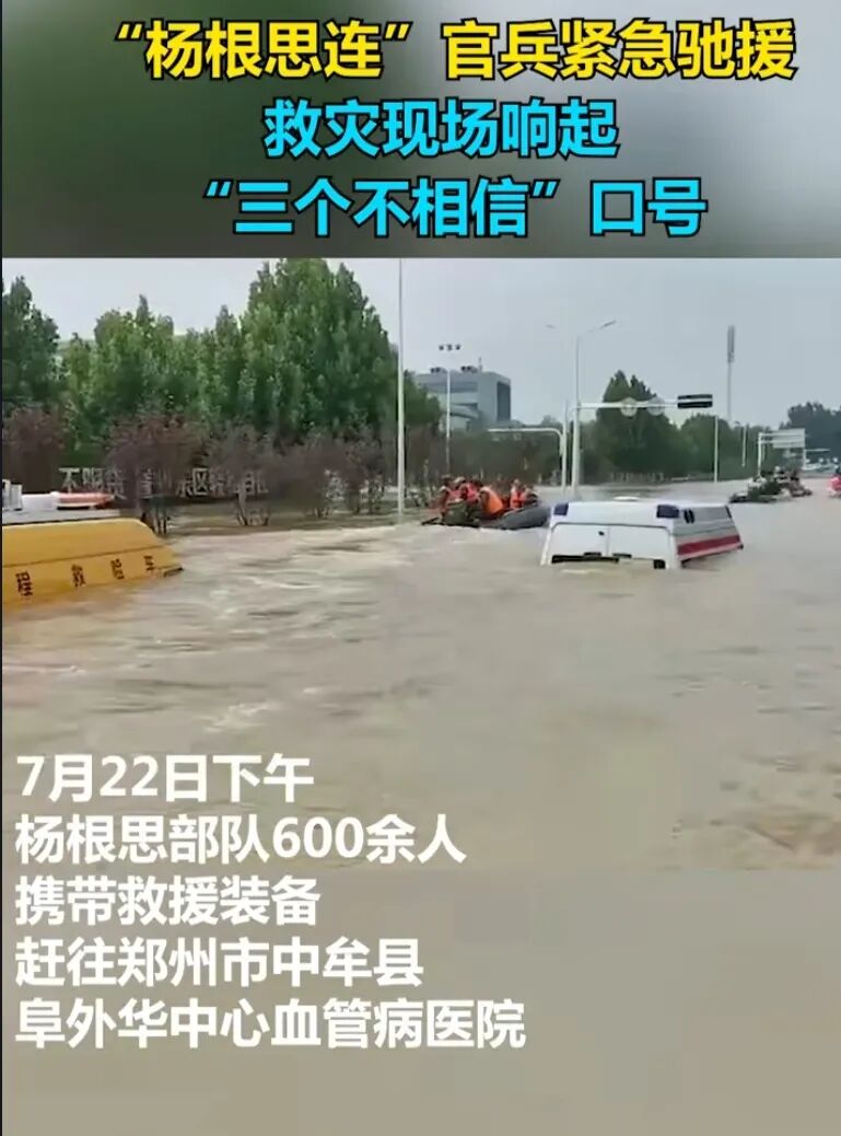 7月21日,“杨根思连”官兵紧急驰援救灾现场。