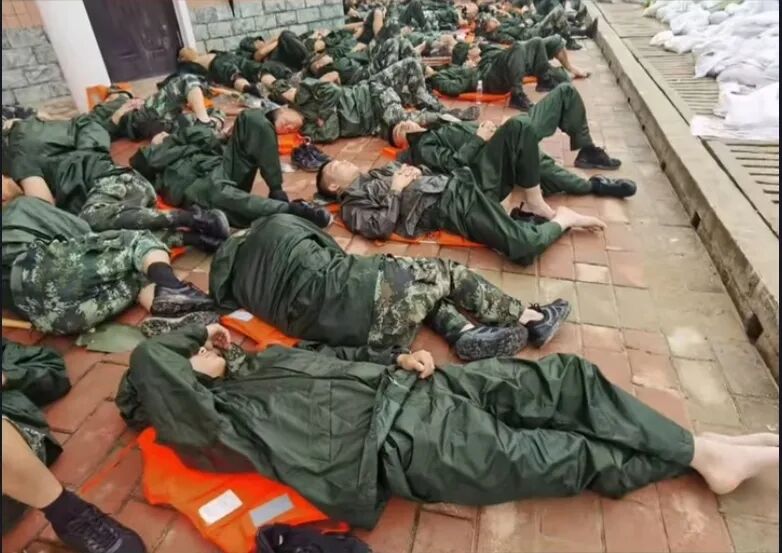 超强度的压力下,短短三天,很多子弟兵们累得躺倒在地。