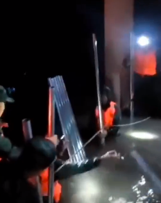 为了堵住决堤,他们不停用沙袋围住缺口。