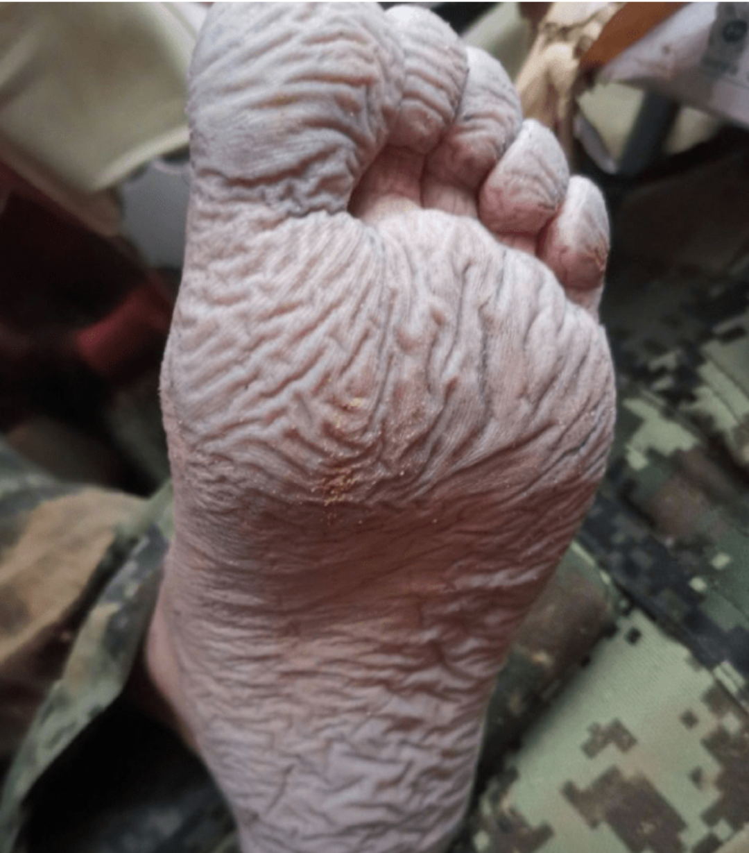 哪怕腿被水中的障碍物磕得又青又紫,脚被泡的发软发白。