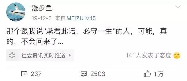 她的微博更新,停止在了2019年,最后一条这样写道:“那个跟我说,承君此诺,必守一生的人,可能真的不会回来了。”