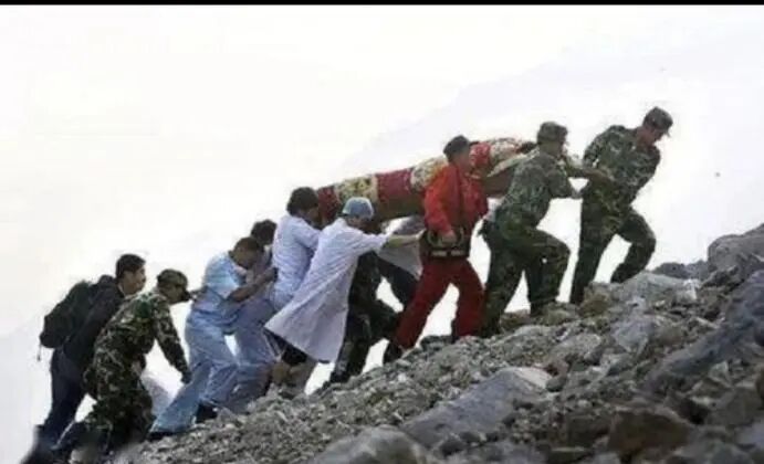 等他们跑到教室跟前才发现:原来的教学楼,已经被震得歪歪斜斜,他们小心翼翼地走上楼,就听见轰的一声,楼梯被震塌了。