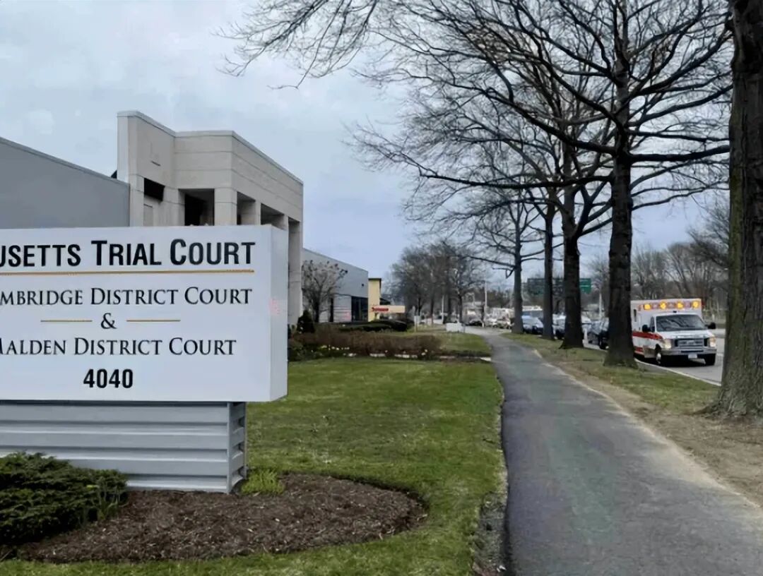 2022年4月7日下午,美国马萨诸塞州法院外。