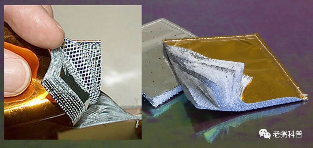 在空间站防护盾下方,还覆盖着厚厚的热绝缘层,这是由许多层镀铝的聚酰亚胺薄膜夹着高强度β布构成的毯子。由于铝可以反射大部分红外辐射,因此空间站包裹的这一张毯子能阻挡外边的热,不让空间站变成烤炉,其内部热能也不容易散失。实际上你看到许多卫星、还有嫦娥着陆器表面金灿灿的东西,那其实不是黄金,它就是镀铝的聚酰亚胺隔热毯。