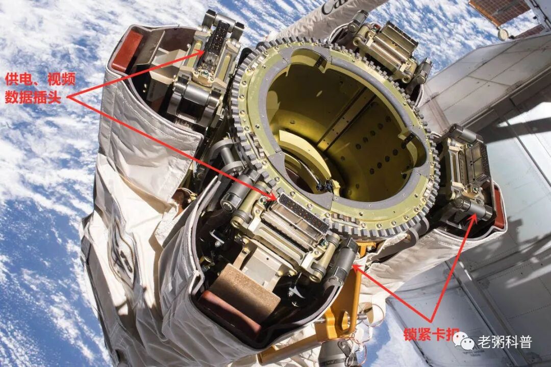 机械臂没有“手”,它通过三根钢丝和卡扣来捕获和锁定飞船,只要机械臂保持轻柔与缓慢的运动速度,它就能拖动庞大沉重的飞船。25吨?那都不是事儿,轻轻一抓就转起来!
