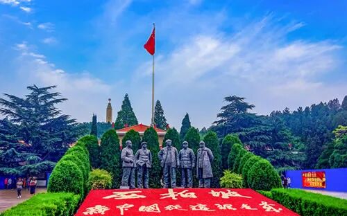 位于西柏坡纪念馆广场中央,均高2.5米,青铜铸像,艺术地再现了西柏坡时期中国共产党第一代领导集体充满胜利的喜悦和对未来无限憧憬的情景。
