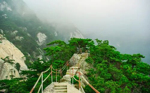 小华山:小华山海拨1102m,只有一条宽仅尺余的小道可上,两侧都是陡峭悬岩,峰脊之上。