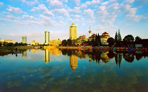 整个濠河曲曲折折,迂回激荡,呈倒置的葫芦形状环抱老城区,形成了“水抱城、城拥水,城水一体”的独特风格,素有“江城翡翠项链”之称。