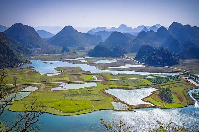 文山州丘北普者黑景区,壮文名称为 Dieg funggingj Luegcanghgwx,音译为"岸庐尚阁"。其位于中国云南省文山壮族苗族自治州丘北县境内,距县城13公里。景区总面积388平方公里,核心景区165平方公里,属于滇东南岩溶区,是发育典型的喀斯特岩溶地貌,以“水上田园、湖泊峰林、彝家水乡、岩溶湿地、荷花世界、候鸟天堂”六大景观而著称。景区内普者黑村是2013湖南卫视大型亲子秀节目《爸爸去哪儿》第一季第三个外景的拍摄地。【 详细>>】