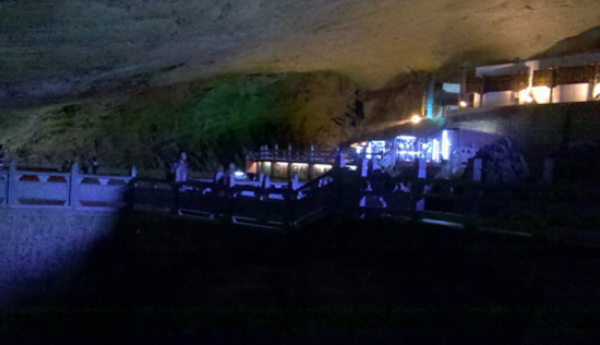 ——惊天动地。为地下双飞瀑,两条瀑布由三十多米高的悬崖上匐然而下,潭深10余米,飞瀑直下,震耳欲聋,瀑布最大流量每秒320立方米。那雄浑壮丽的气势惊天动地,犹如两位浪漫的情侣难舍难分,为国内洞穴中仅有的一大奇观。